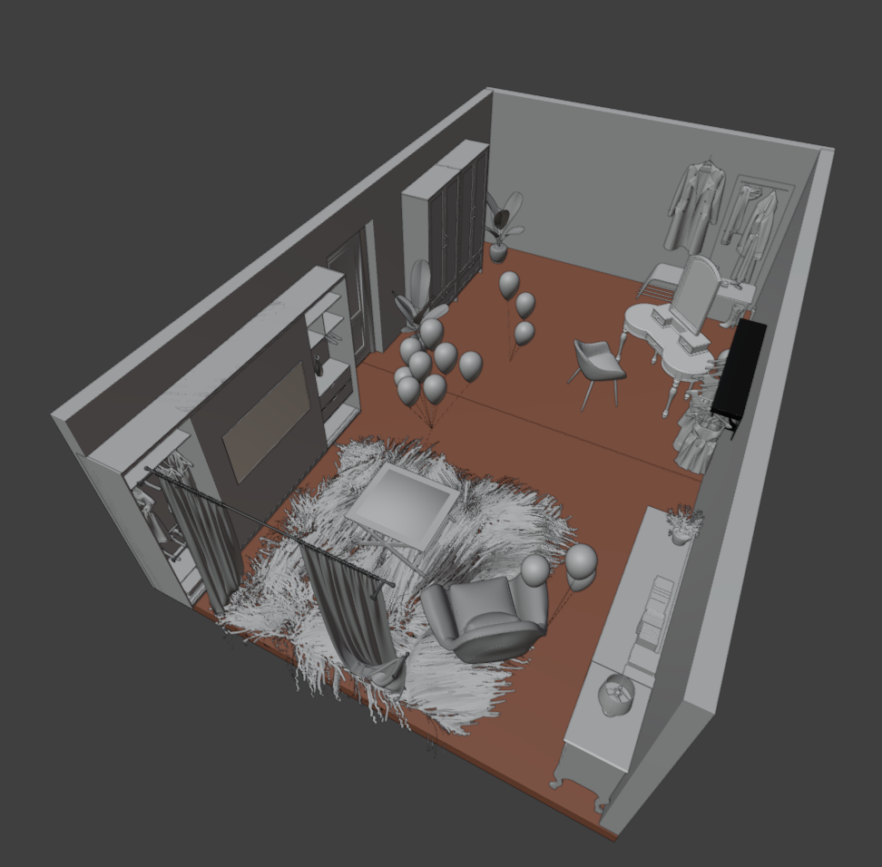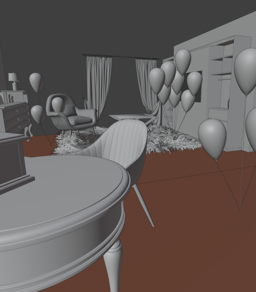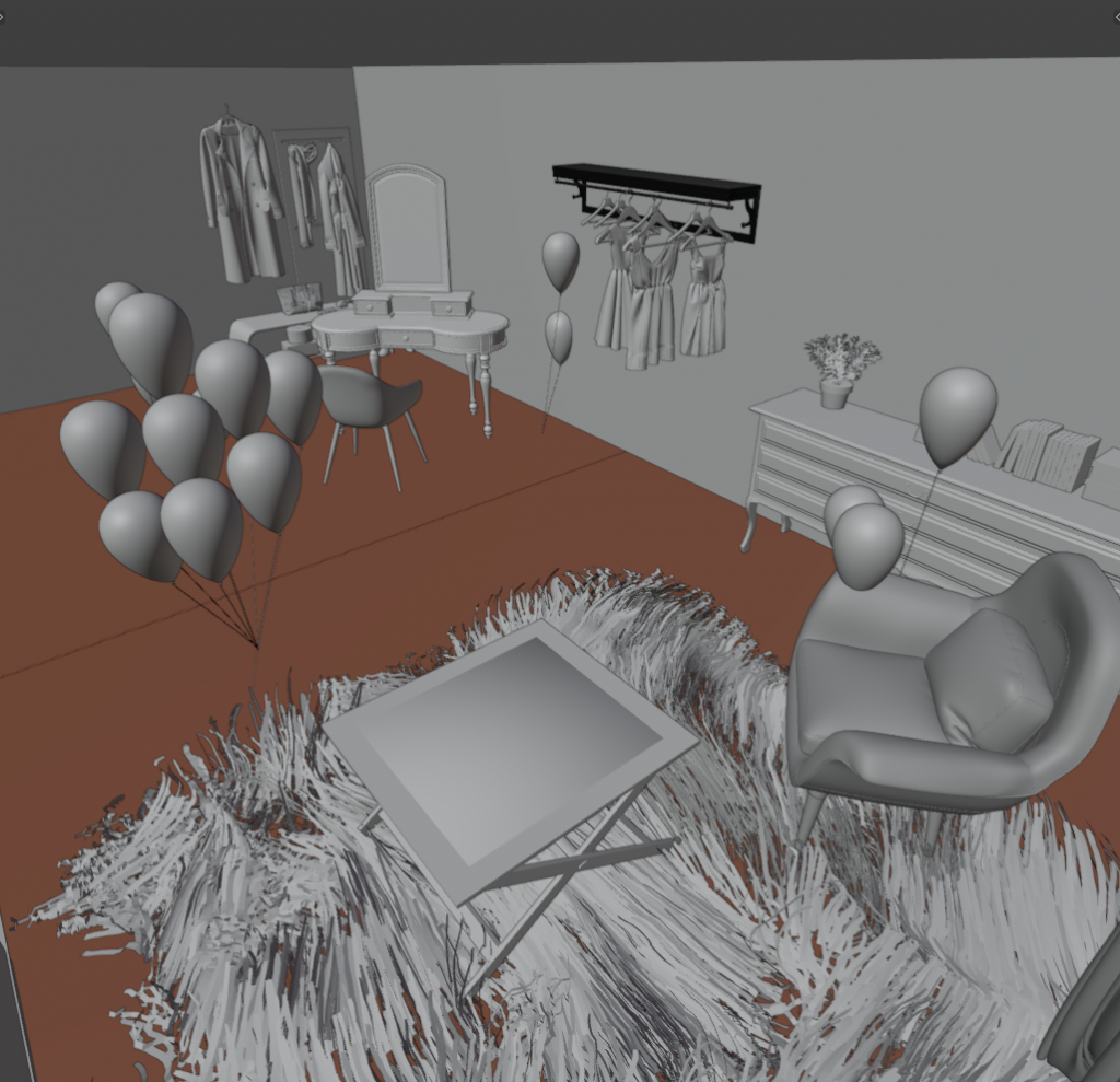 I was assigned to create the lounge model, so I built the corresponding room based on partial sketches drawn by my teammates.